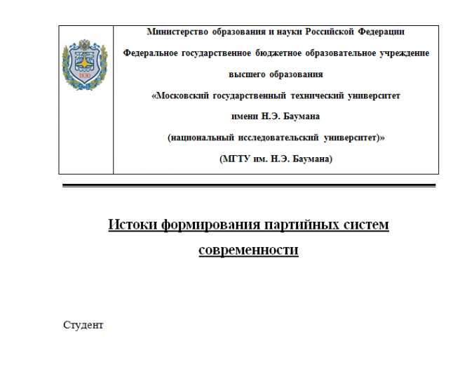 Для студентов МГТУ им. Н.Э.Баумана по предмету ПолитологияРеферат "Истоки формирования партийных систем современности" + презентация для защитыРеферат "Истоки формирования партийных систем современности" + презентация для защиты