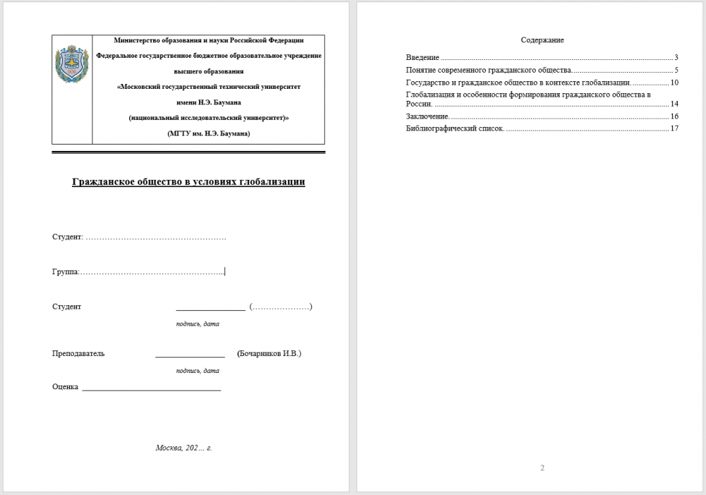 Для студентов МГТУ им. Н.Э.Баумана по предмету ПолитологияНа тему: Гражданское общество в условиях глобализацииНа тему: Гражданское общество в условиях глобализации