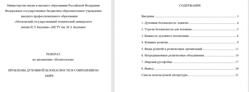 Для студентов МГТУ им. Н.Э.Баумана по предмету ПолитологияПроблемы духовной безопасности в современном миреПроблемы духовной безопасности в современном мире
