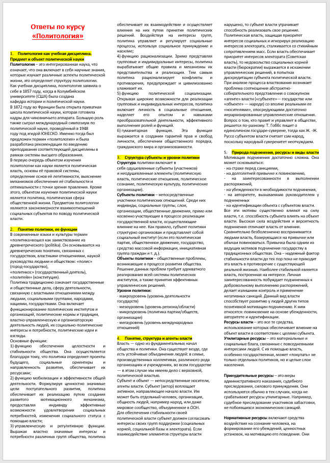Ответы к контрольной работе: Отличная сборка ответов по политологии (в виде ПЕЧАТИ)
