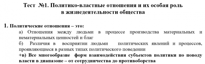 Ответы к контрольной работе: Ответы на тест №1: Политико-властные отношения и их особая роль в жизнедеятельности общества (40/40=100%)