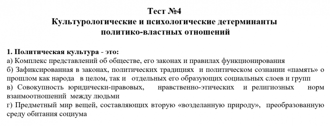 💥Ответы на тест № 4: Культурологические и психологические детерминанты политико-властных отношений (40/40=100%)💥