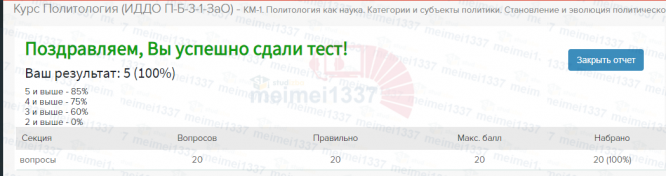 Курс Политология (ИДДО П-Б-3-1-ЗаО) КМ-1. Политология как наука. Категории и субъекты политики. Становление и эволюция политической мысли. Тестирование купить сдачу теста МЭИ ИДДО Прометей.