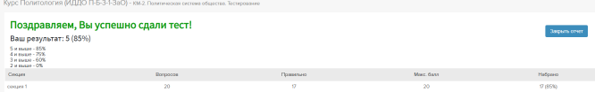 Ответы к заданиям: КМ-2. Политическая система общества. Тестирование