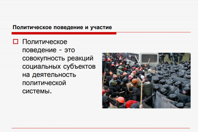 Для студентов УрГУПС по предмету ПолитологияПолитическое поведение и участиеПолитическое поведение и участие