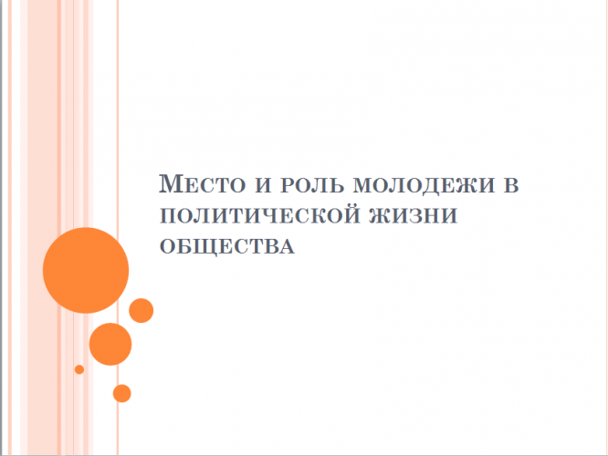 Презентация: Презентация "Место и роль молодежи в политической жизни общества"
