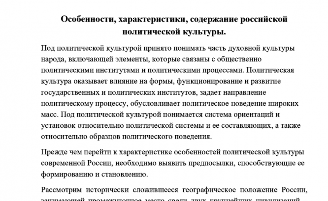 Доклад: Особенности, характеристики, содержание российской политической культуры.
