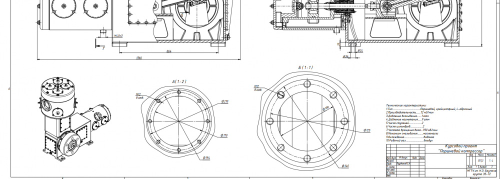 Главная » Учебные материалы » Поршневые компрессоры » Курсовые работы » МГТУ им. Н.Э.Баумана » Несколько классов/семестров » Разработка L-образного двухрядного крейцкопфного поршневого компрессора