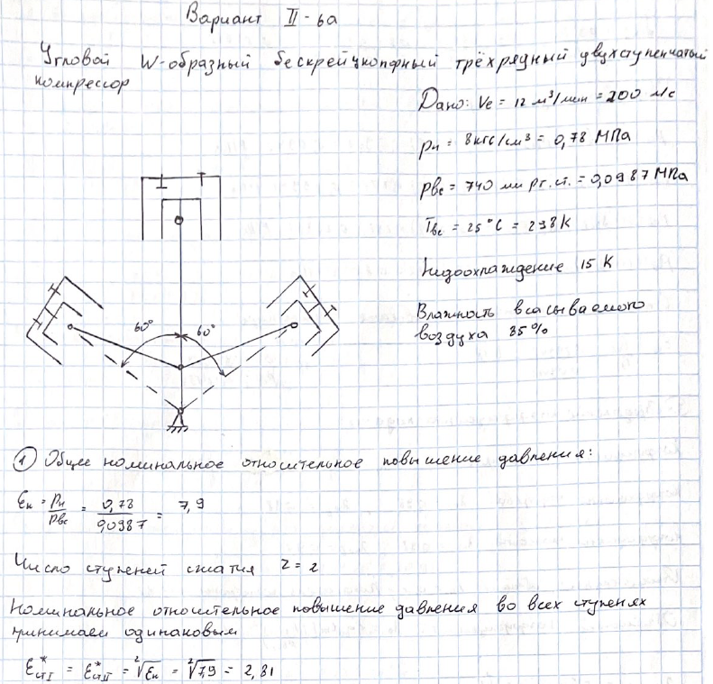ДЗ 1: Тепловой расчет двухступенчатого поршневого компрессора вариант II-6а
