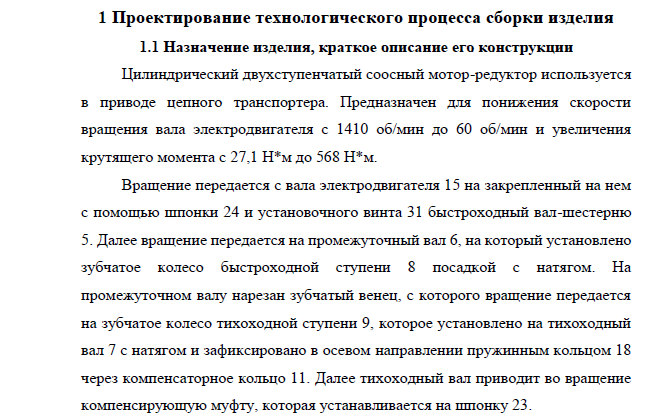 Техпроцессы сборки мотор-редуктора и изг-я тихоходного вала