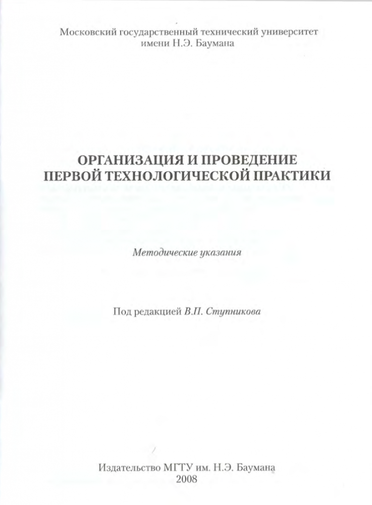 Для студентов МГТУ им. Н.Э.Баумана по предмету ПрактикаСтупников В.П. - МУ - Организация и проведение первой технологической практикиСтупников В.П. - МУ - Организация и проведение первой технологической практики