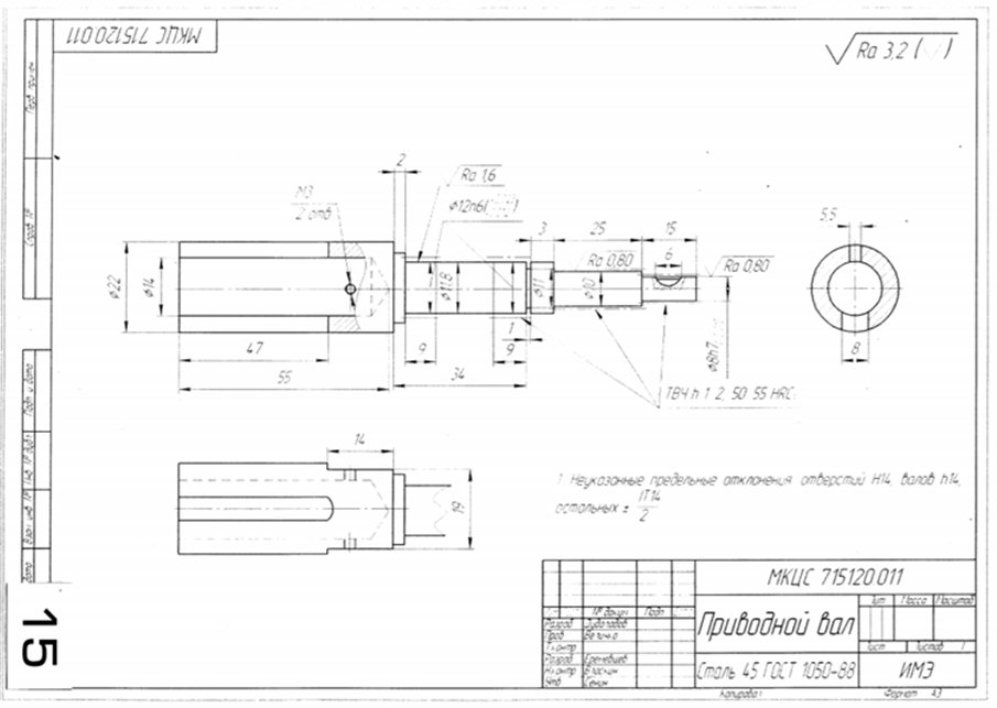 Для студентов МГТУ им. Н.Э.Баумана по предмету ПрактикаПолностью проверенный отчет с технологическим процессом обработки (приводного вала)Полностью проверенный отчет с технологическим процессом обработки (приводного вала)