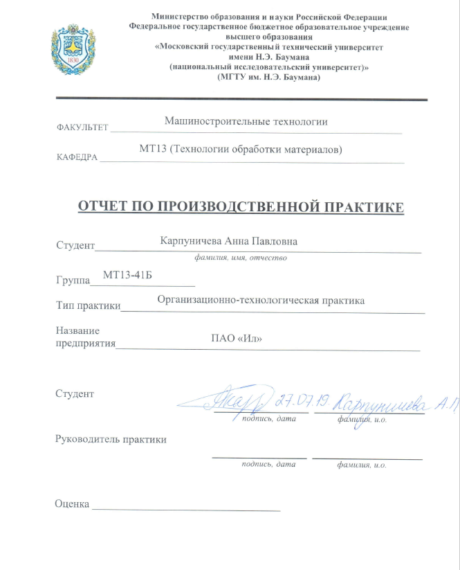 Для студентов МГТУ им. Н.Э.Баумана по предмету ПрактикаОтчёт по Производственной практике МТ13 (ПАО "ИЛ") в пдф/pdf 2019гОтчёт по Производственной практике МТ13 (ПАО "ИЛ") в пдф/pdf 2019г