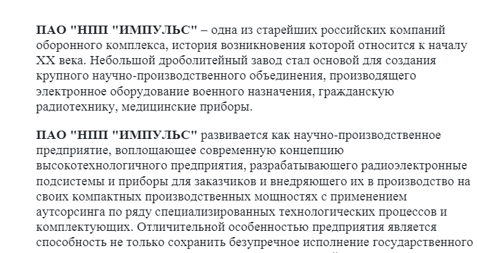 Предприятие: ПАО ««НПП «Импульс». Проходил ознакомительный курс лекций о структуре предприятия, направлениях деятельности и организации производства.