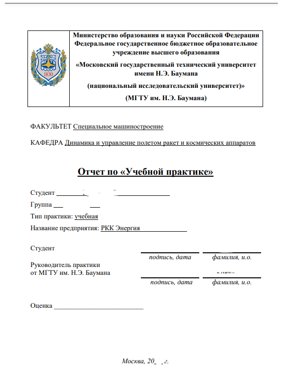 Для студентов МГТУ им. Н.Э.Баумана по предмету ПрактикаОтчет по учебной практике - Предприятие РКК ЭнергияОтчет по учебной практике - Предприятие РКК Энергия