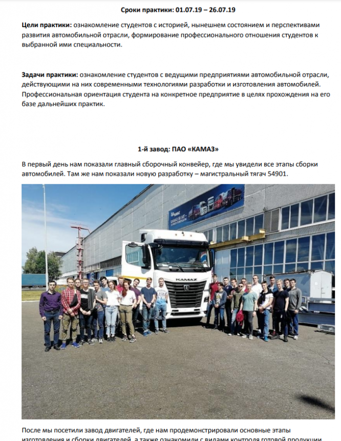 Отчёт по практике: Отчет о прохождении ознакомительной практики - ПАО «КАМАЗ»