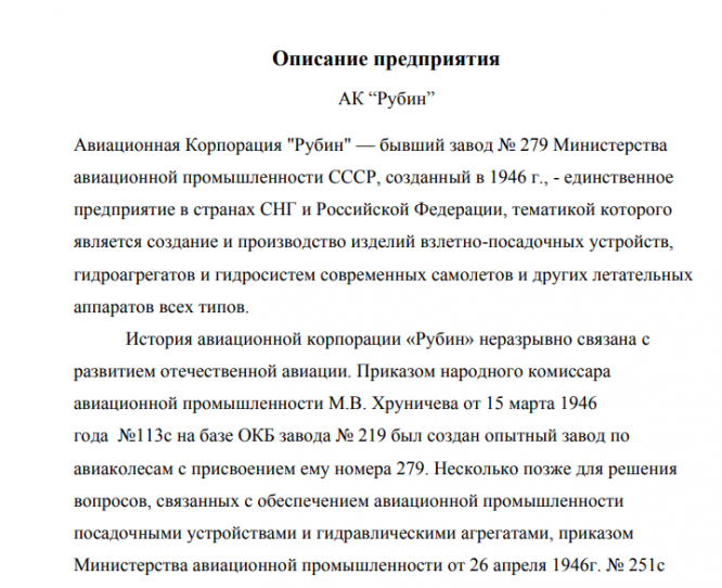 Отчёт по практике: Отчет о прохождении технологической практики на “ПАО Авиационная корпорация Рубин”
