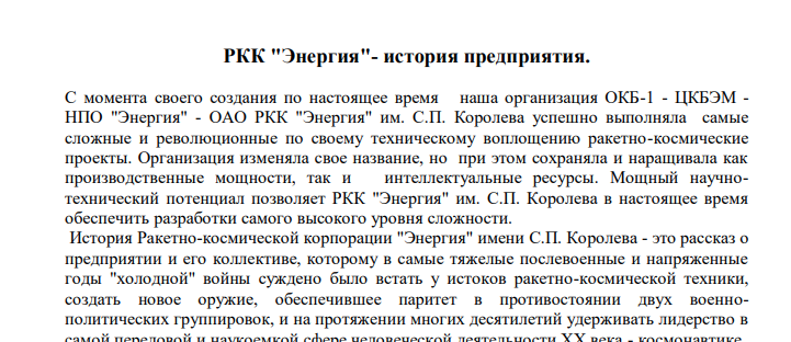 Отчёт по практике: Отчет о прохождении технологической практики - Предприятие РКК «Энергия»
