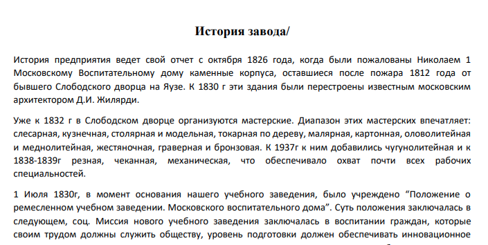 ремесленном учебном заведении. Московского воспитательного дома”. Суть положения заключалась в