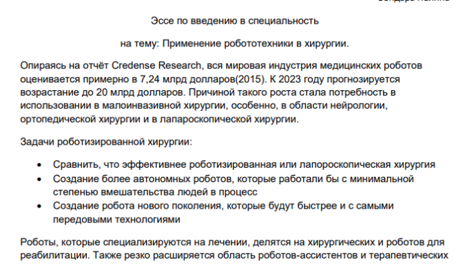 Отчёт по практике: Применение робототехники в хирургии
