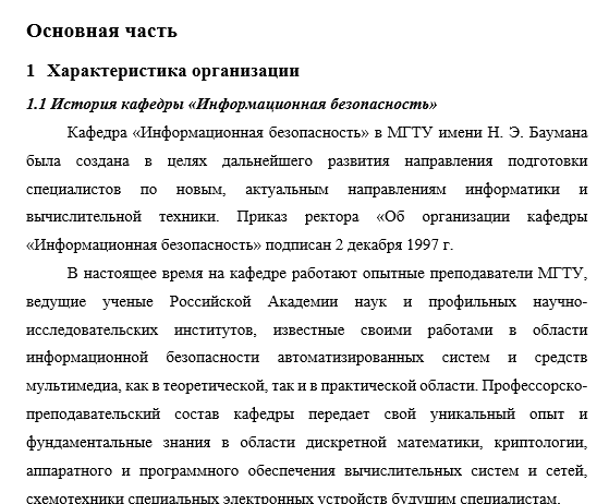 Характеристики отчёта по практике