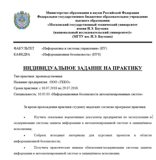Для студентов МГТУ им. Н.Э.Баумана по предмету ПрактикаОтчет по производственной практике - Предприятие ООО «ТЕКО» Отчет по производственной практике - Предприятие ООО «ТЕКО»