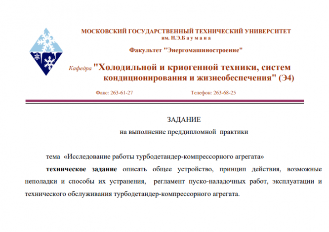 ЗАДАНИЕ на выполнение преддипломной практики тема «Исследование работы турбодетандер-компрессорного агрегата» техническое задание описать общее устройство, принцип действия, возможные неполадки и способы их устранения, регламент пуско-наладочных работ, эксплуатации и технического обслуживания турбодетандер-компрессорного агрегата.