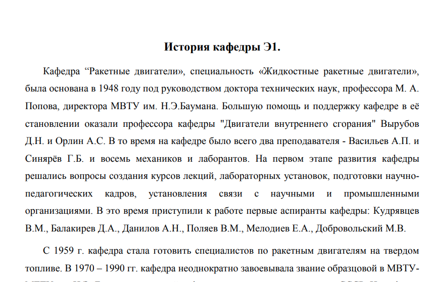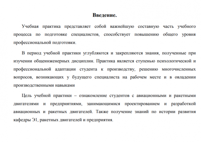 Учебная практика представляет собой важнейшую составную часть учебного процесса по подготовке специалистов, способствует повышению общего уровня профессиональной подготовки. В период учебной практики углубляются и закрепляются знания, полученные при изучении общеинженерных дисциплин. Практика является ступенью психологической и профессиональной адаптации студента к производству, решению многочисленных вопросов, возникающих у будущего специалиста на рабочем месте и в овладении производственными навыками Цель учебной практики – ознакомление студентов с авиационными и ракетными двигателями и предприятиями, занимающимися проектированием и разработкой авиационных и ракетных двигателей. Также получение знаний по истории развития кафедры Э1, ракетных двигателей и предприятия.