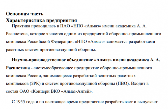 Отчёт по практике: Отчет по производственной практике - Предприятие ПАО НПО «АЛМАЗ»