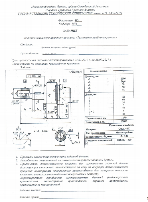 Цели: 1. Знакомство с производственным процессом на предприятии. 2. Рассмотрение технологического процесса производства. 3. Получение информации для выполнения задания. Задачи: 1. Провести анализ технологичности заданной детали. 2. Разработать операционный технологический процесс заданной детали. 3. Представить технологическую оснастку для изготовления заданной детали (конструкция станочного приспособления на одну из операций технологического процесса; конструкция контрольного приспособления для измерения точности взаимного расположения отдельных поверхностей деталей). 4. Характеристика серийности изготавливаемых деталей.