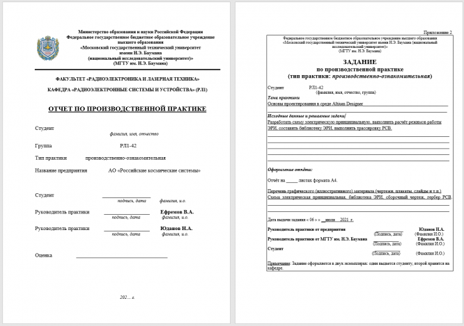 Для студентов МГТУ им. Н.Э.Баумана по предмету ПрактикаОтчёт по производственной практике на тему: Основы проектирования в среде Altium Designer в АО «Российские космические системы» Отчёт по производственной практике на тему: Основы проектирования в среде Altium Designer в АО «Российские космические системы»