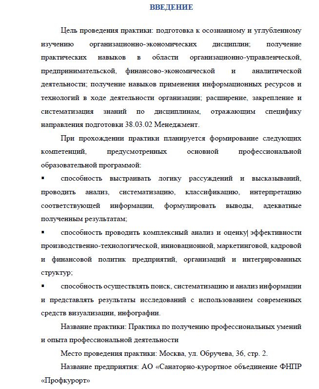 Отчёт по практике: Отчет по практике (АО "Санаторно-курортное объединение ФНПР "Профкурорт")
