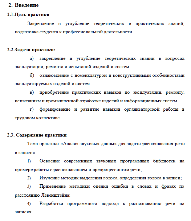 Характеристики отчёта по практике