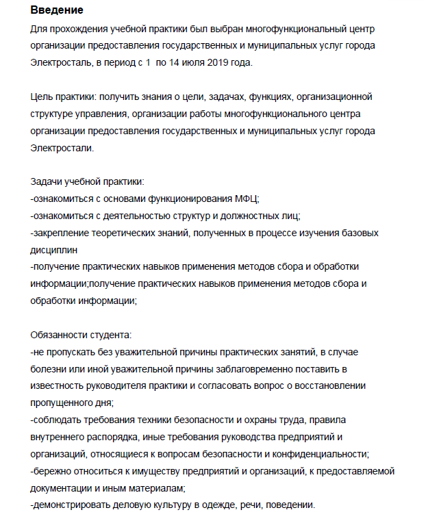 Отчет по учебной практике (Муниципальное казённое учреждение "Многофункциональный центр предоставления государственных и муниципальных услуг городского округа Электросталь Московской области")