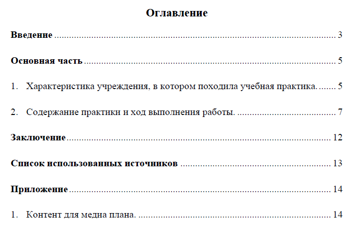 Характеристики отчёта по практике