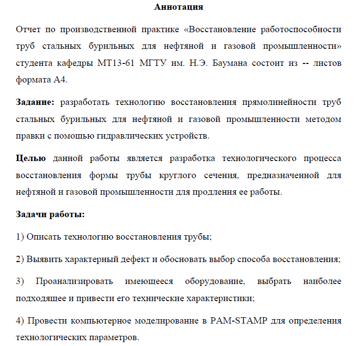 Отчёт по практике: Восстановление работоспособности труб стальных бурильных для нефтяной и газовой промышленноси