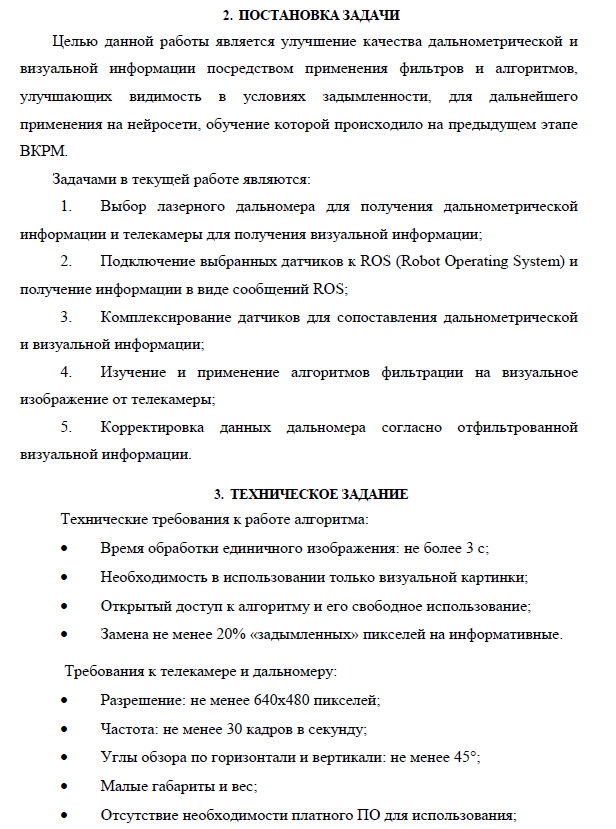 Главная » Учебные материалы » Практика » Отчёты по практике » МГТУ им. Н.Э.Баумана » 12 семестр (4 семестр магистратуры) » Отчет по преддипломной практике (Статья на тему "Разработка лабораторной работы по теме: Предобработка информации с датчиков СТЗ мобильного робота-спасателя в условиях задымления")