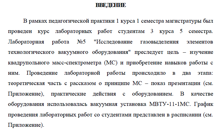 Отчет по педагогической практике («Физика вакуума. Лабораторная работа №5. Исследование газовой среды вакуумной камеры при напуске рабочих газов»)