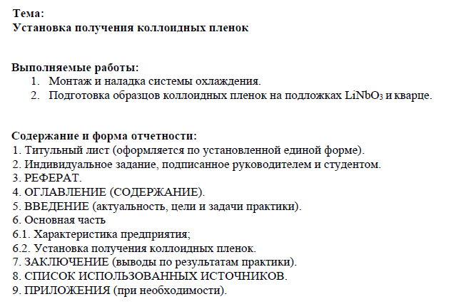 Отчёт по практике: Установка получения коллоидных пленок