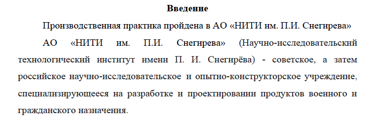 Отчёт по практике: Отчет по производственной практике (АО "НИТИ им. П.И. Снегирева")