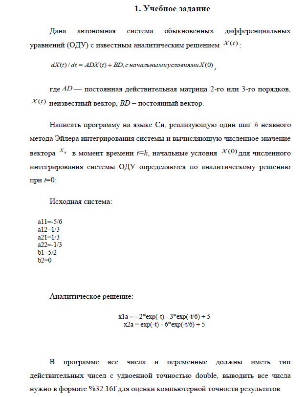 Для студентов МГТУ им. Н.Э.Баумана по предмету ПрактикаВычислительный практикум (задание №1, неявный метод Эйлера (НМЭ))Вычислительный практикум (задание №1, неявный метод Эйлера (НМЭ))