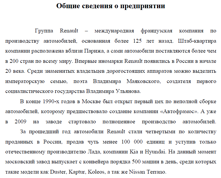 Отчёт по практике: Отчет по производственной практике (ЗАО "Рено Россия")