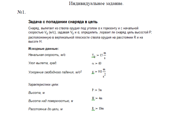 Главная » Учебные материалы » Практика » Отчёты по практике » МГТУ им. Н.Э.Баумана » 4 семестр » Отчет по учебной практике (КОМПАС 3D, MathCAD - Задача о попадании снаряда в цель)