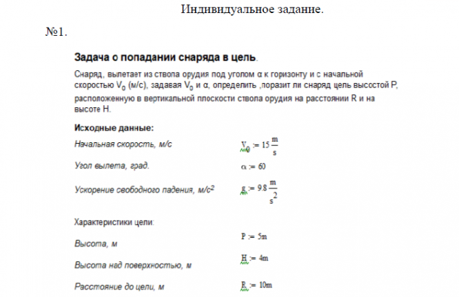 Отчёт по практике: Отчет по учебной практике (КОМПАС 3D, MathCAD - Задача о попадании снаряда в цель)