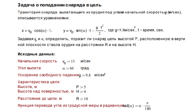 Отчёт по практике: Отчет по учебной практике (КОМПАС 3D, MathCAD - Задача о попадании снаряда в цель)