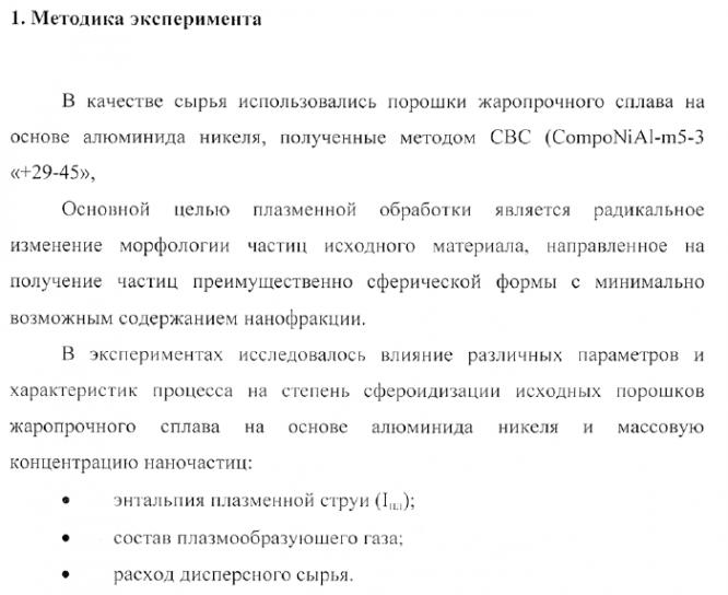 Отчет по производственной практике (Исследование влияния параметров плазменного процесса на степень сфероидизации исходных порошков на основе алюминида никеля)