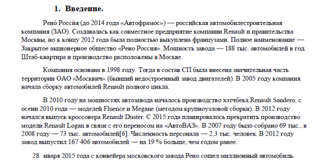 Отчёт по практике: Отчет о прохождении второй технологической практики (ЗАО "РЕНО России")
