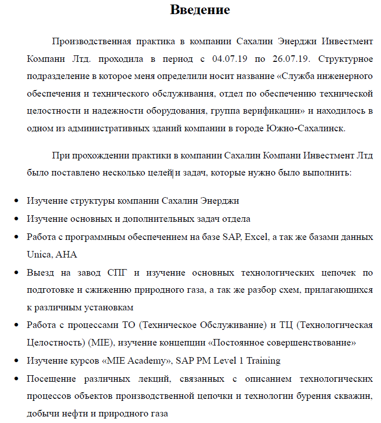 Отчёт по практике: Отчет по производственной практике (Сахалин Энерджи Инвестмент Компани Лтд)