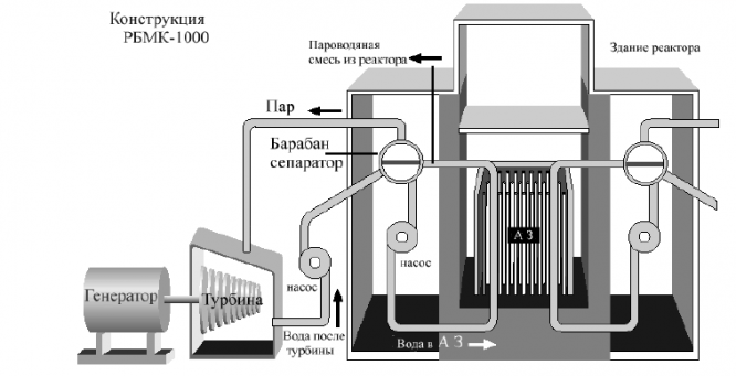 Реактор РБМК-1000 канальный, гетерогенный, графито-водный, кипящего типа, на тепловых нейтронах. Одной из целей при разработке реактора РБМК было улучшение топливного цикла. Решение этой проблемы связано с разработкой конструкционных материалов, слабо поглощающих нейтроны и мало отличающих по своим механическим свойствами от нержавеющей стали. Снижение поглощения нейтронов в конструкционных материалах дает возможность использовать менее обогащенное топливо с процентным содержанием урана 235 2.8%.