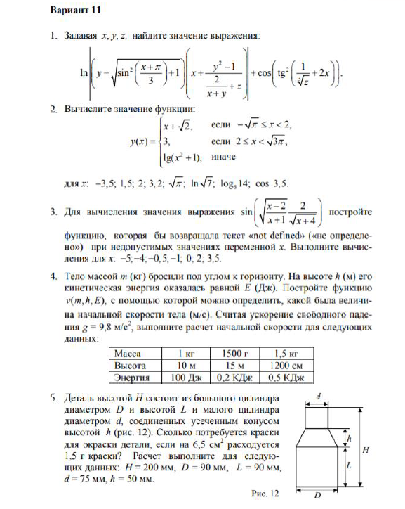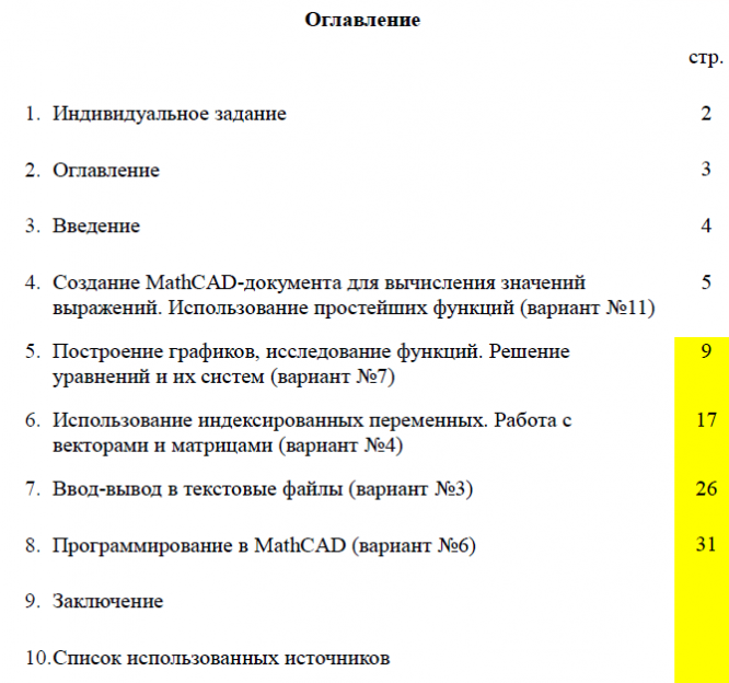 Составить и оформить документы в программном пакете MathCad для решения математических и инженерных задач по следующим темам:
